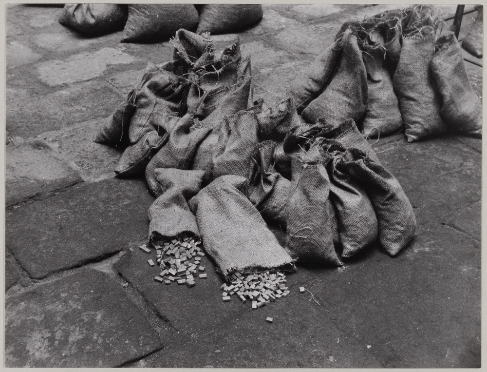 Sacs contenant des pièces de mosaïque, [Venise, Italie], [vers 1967]