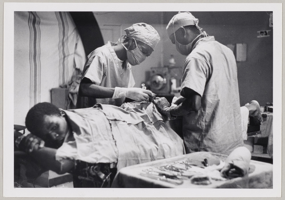 Salle d'opération avec des chirurgiens africains, [en 1962]