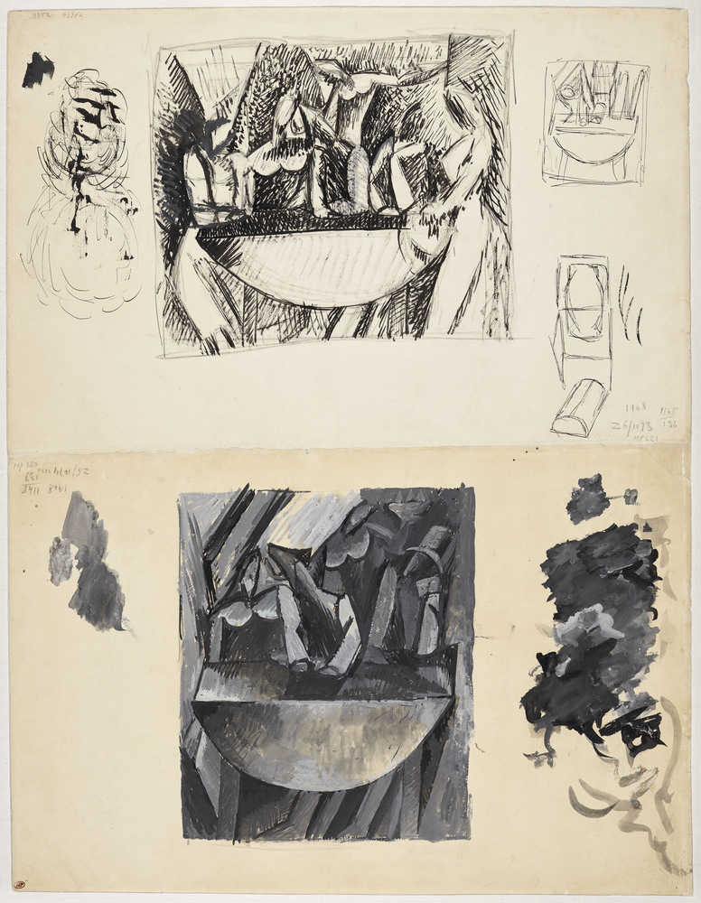 - Auteur(s)TitreEtudes pour "Carnaval au bistrot"Datefin 1908Type de supportDessinNuméro d'inventaireMP621 (r)Auteur(s)TitreEtudes pour "Carnaval au bistrot"Date de créationfin 1908Lieu de créationParisType de supportDessinTechniqueEncre, gouache et crayon noir sur papierDimensions32 x 49,4 cmDescriptionEtude remontée avec une autre (M.P.620(r)) dont elle avait été coupée