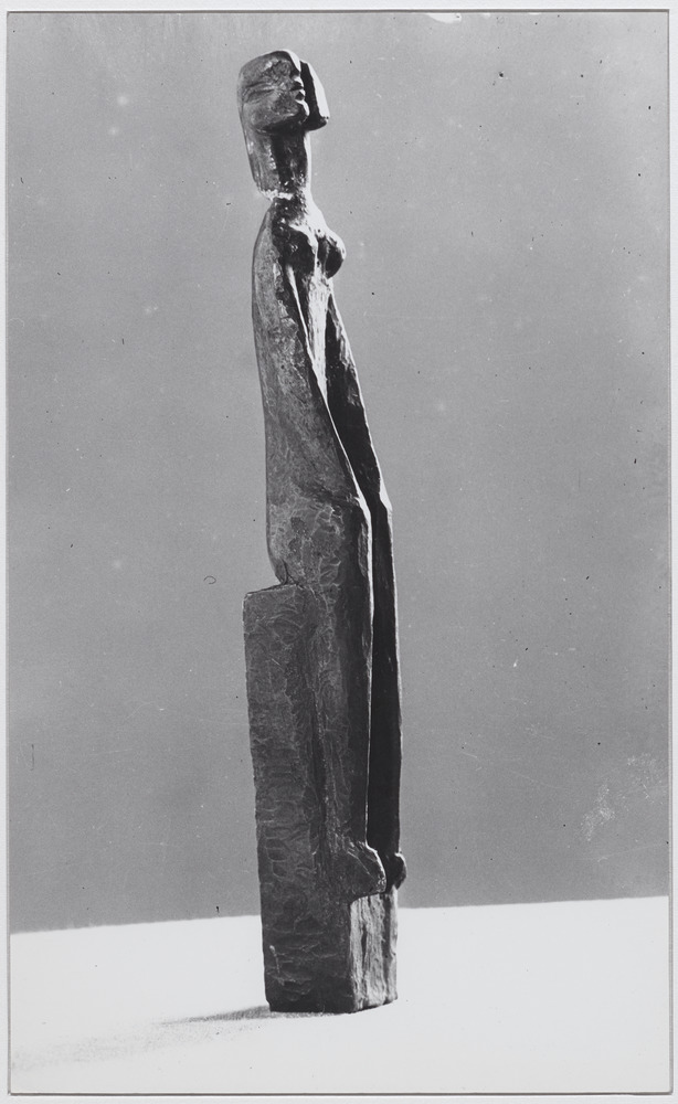 Sculpture en bois "Femme assise" de 1930, dans l'atelier des Grands-Augustins, Paris, en décembre 1943
