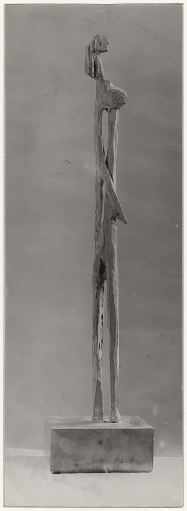 Sculpture en bois "Femme debout" de 1930, dans l'atelier des Grands-Augustins, Paris, en décembre 1943