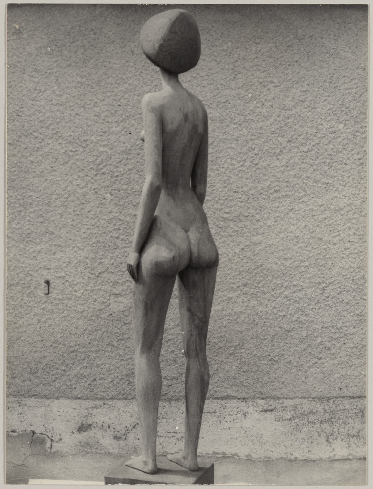 Sculpture en bois représentant une femme en pied et de dos