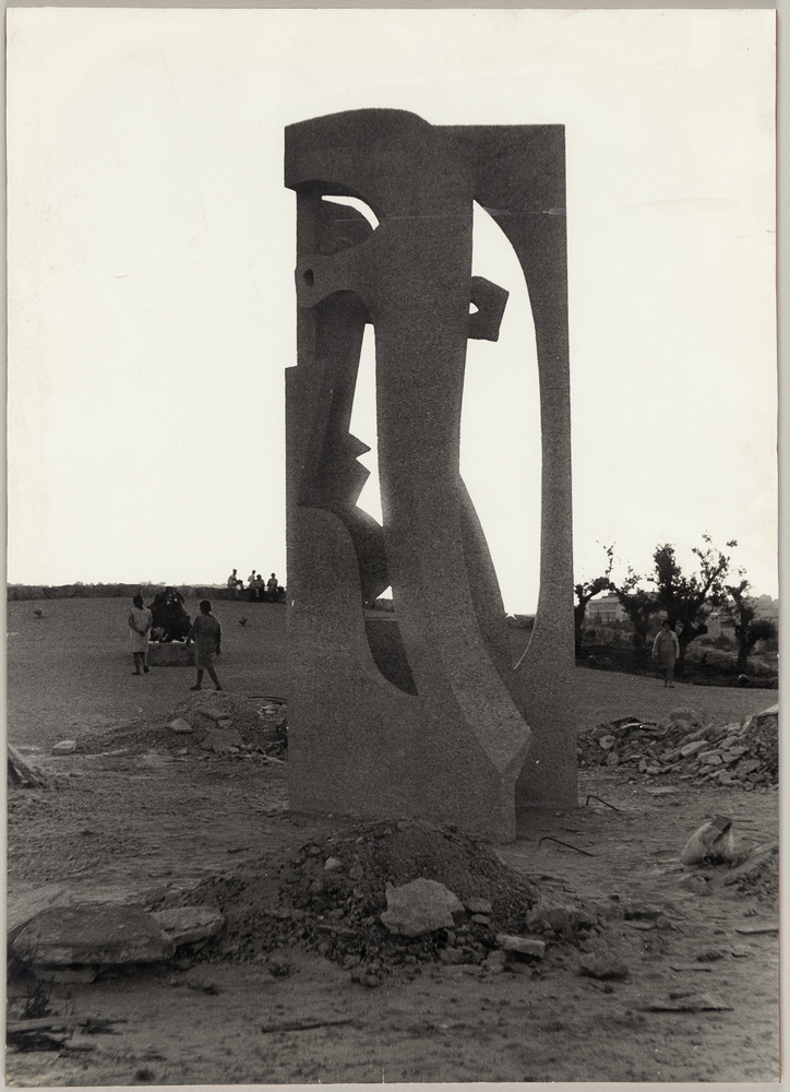 Sculpture en ciment blanc et galets clairs "Figure" de 1967, jardin du musée d'Israël, Jérusalem