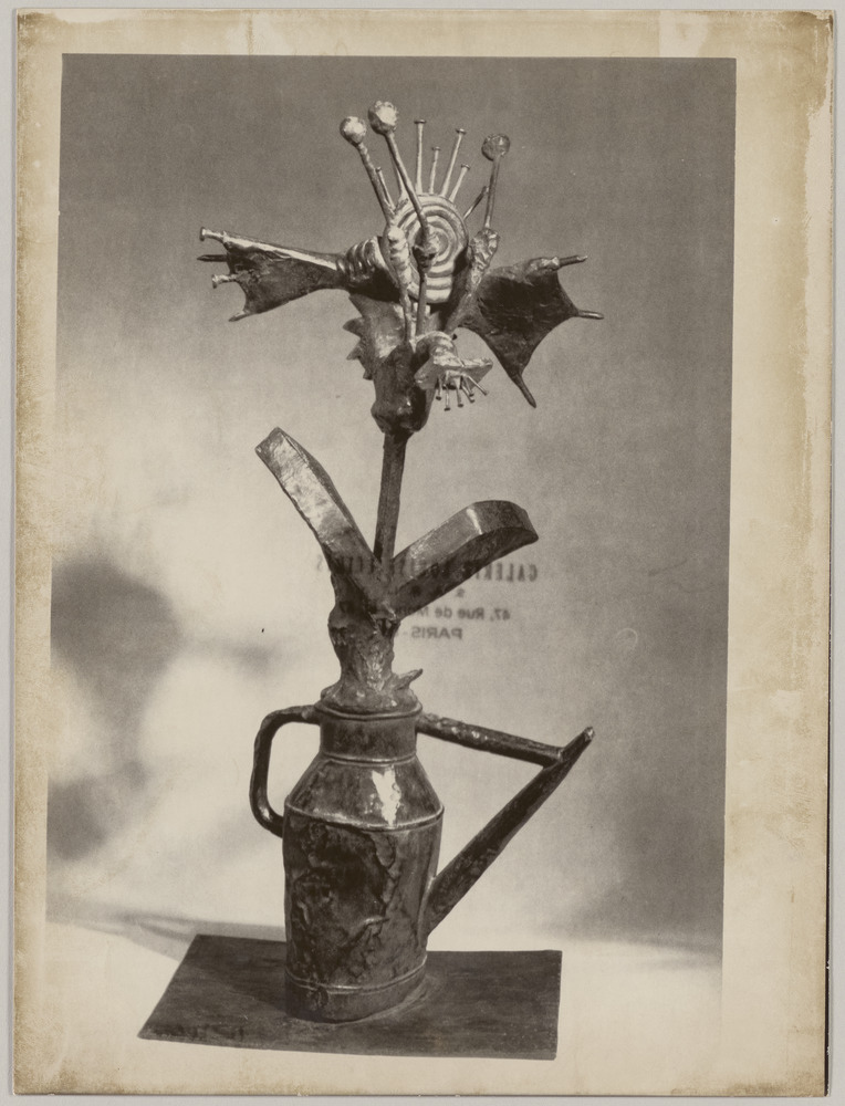 Sculpture en plâtre avec arrosoir, pièces métalliques, clous et bois "L'Arrosoir fleuri", Paris, 1943