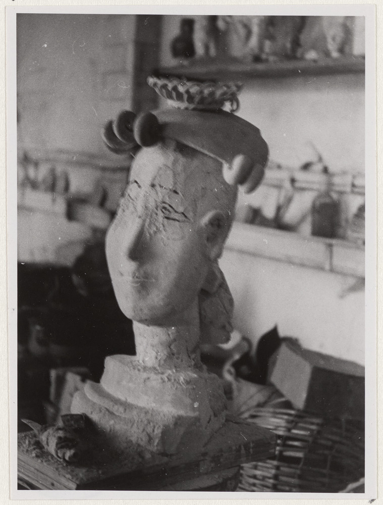 Sculpture en plâtre et terre cuite "Tête de femme", Vallauris, 1951