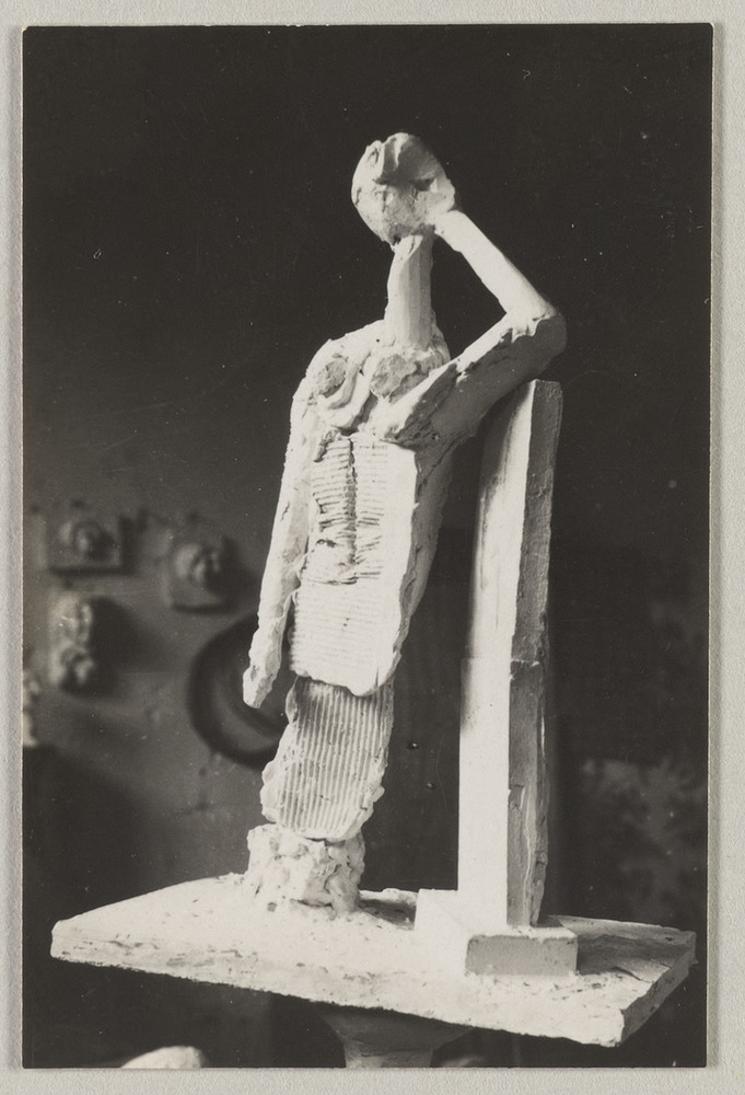 Sculpture en plâtre "Femme accoudée" dans l'atelier de Boisgeloup, Gisors, en 1934