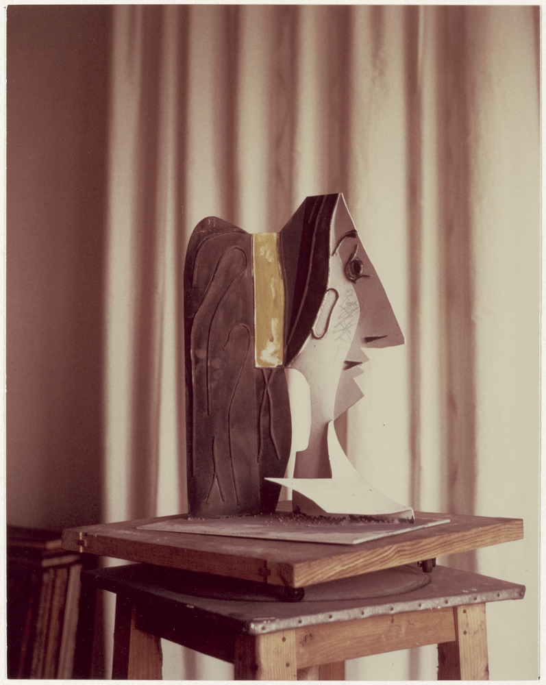 Copié dans le presse-papier :Sculpture en tôle découpée et peinte "Tête de femme (Jacqueline au ruban vert)"… - août 1965 - https://cep.museepicassoparis.fr/explorer/sculpture-en-tole-decoupee-et-peinte-tete-de-femme-jacqueline-au-ruban-vert-apph10484