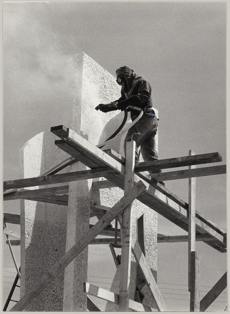 Sculpture "Figure" en cours de sablage avec Carl Nesjar, jardin du musée d'Israël, Jérusalem, en 1967