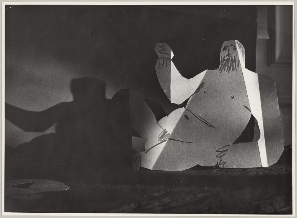 Sculpture à la mine de plomb et carton découpé et plié "Homme assis accoudé" de "Déjeuner sur l'herbe", 26 août 1962