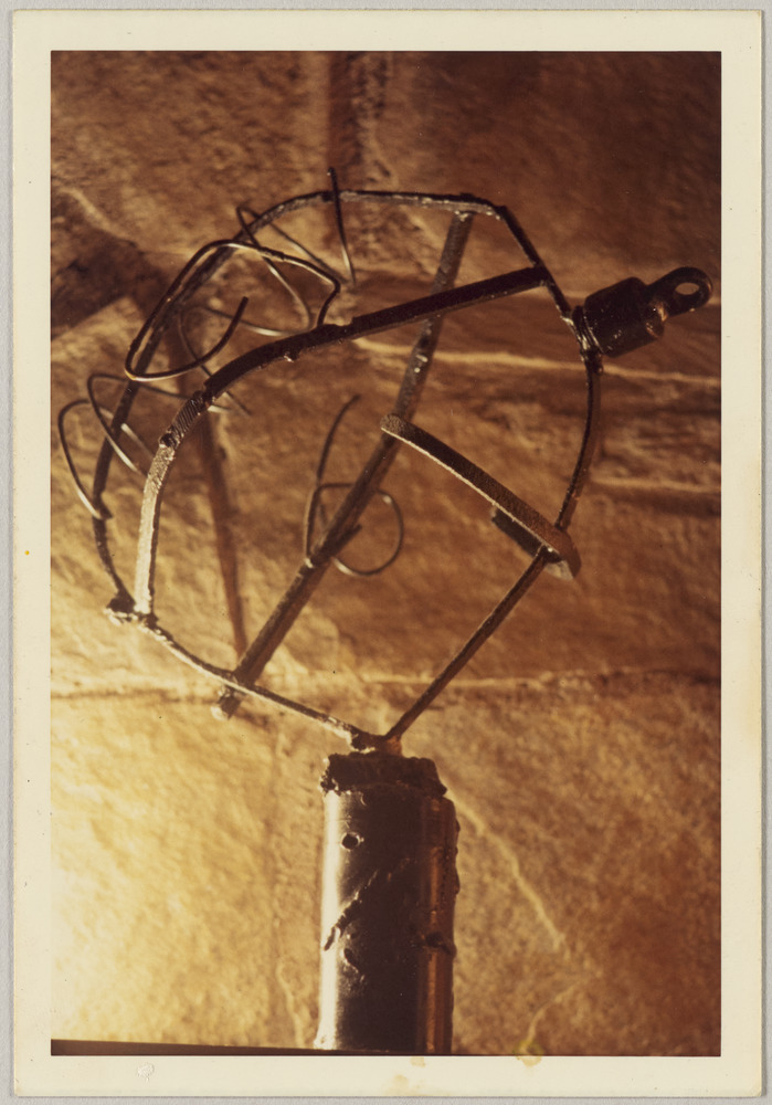 Annotation manuscrite au dos, centrée : "My FRIEND '69' cast iron + steel steel wire brazed + are welded hight 12" width 13 1/2"