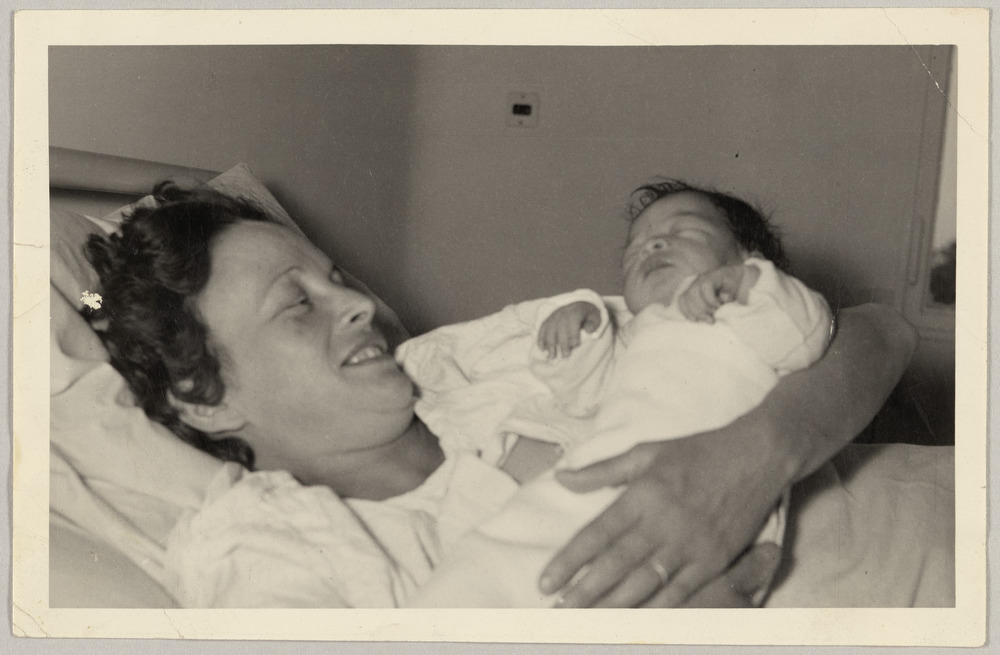 Simone Tinton, nouveau-né, dans les bras de sa mère à l'hôpital, en novembre 1955