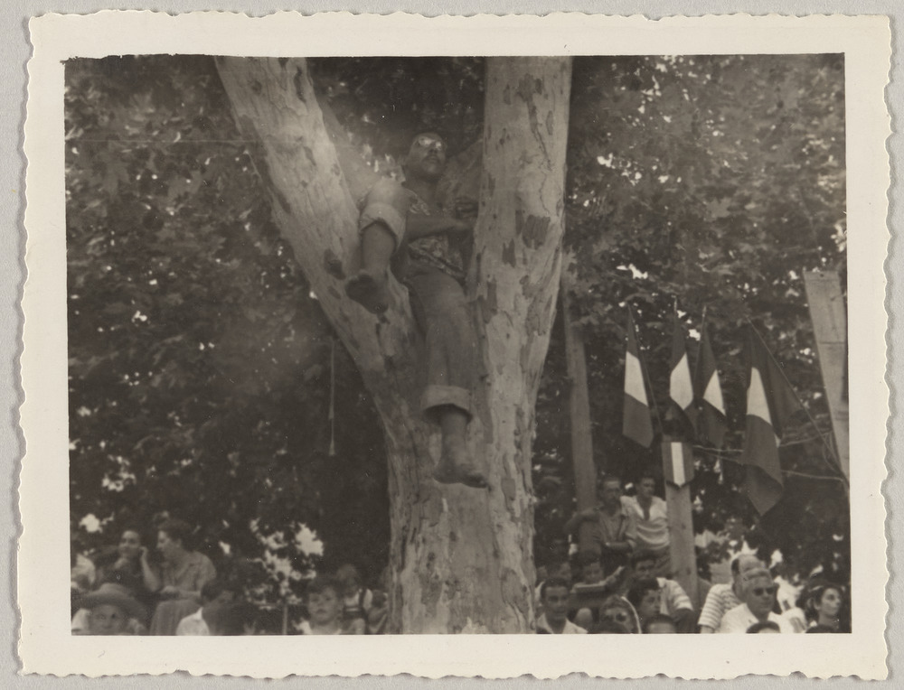 Spectateur dans un arbre à la corrida de Vallauris, en août 1955