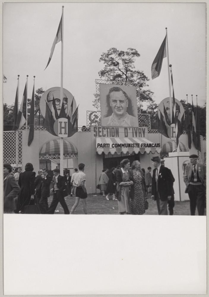 Stand de la section PCF d'Yvry à la Fête de l'Humanité, Bois de Vincennes, le 7 septembre 1952