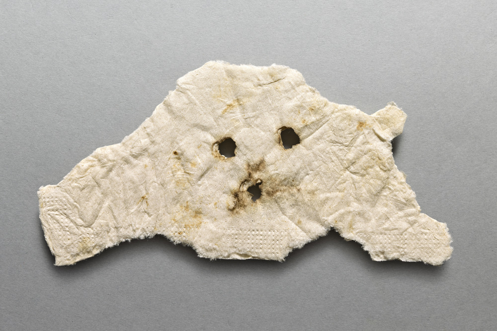 Papier ouaté, déchiré et brûlé d'une serviette de table
