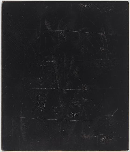 Eau-forte sur cuivre. Plaque rayée et vernie