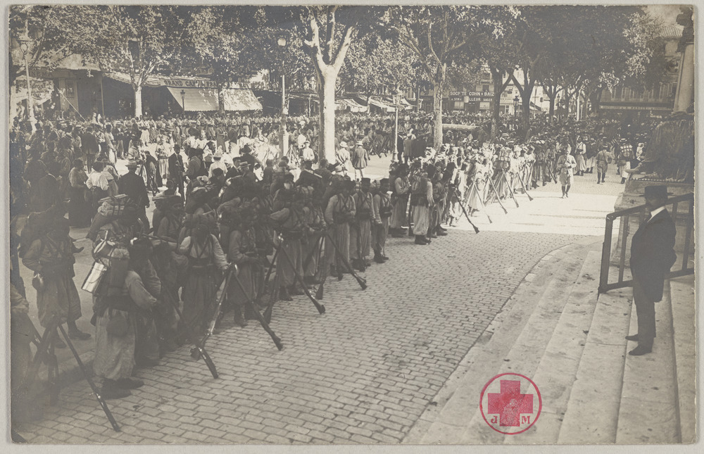 Copié dans le presse-papier :Tirailleurs algériens devant le Théâtre Municipal, place de l'Horloge, à… - 1914 - https://cep.museepicassoparis.fr/explorer/tirailleurs-algeriens-devant-le-theatre-municipal-place-de-lhorloge-apph6059