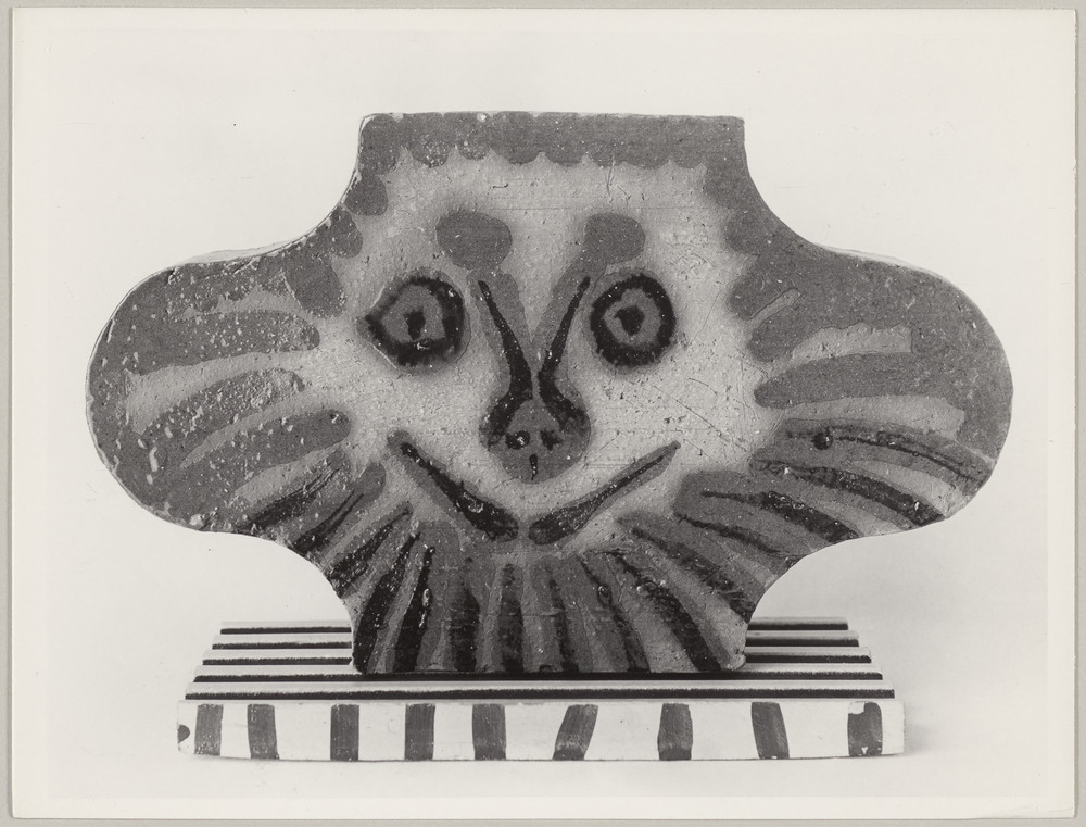 Tomette fixée sur un socle en céramique "Face barbue", Madoura, 1956