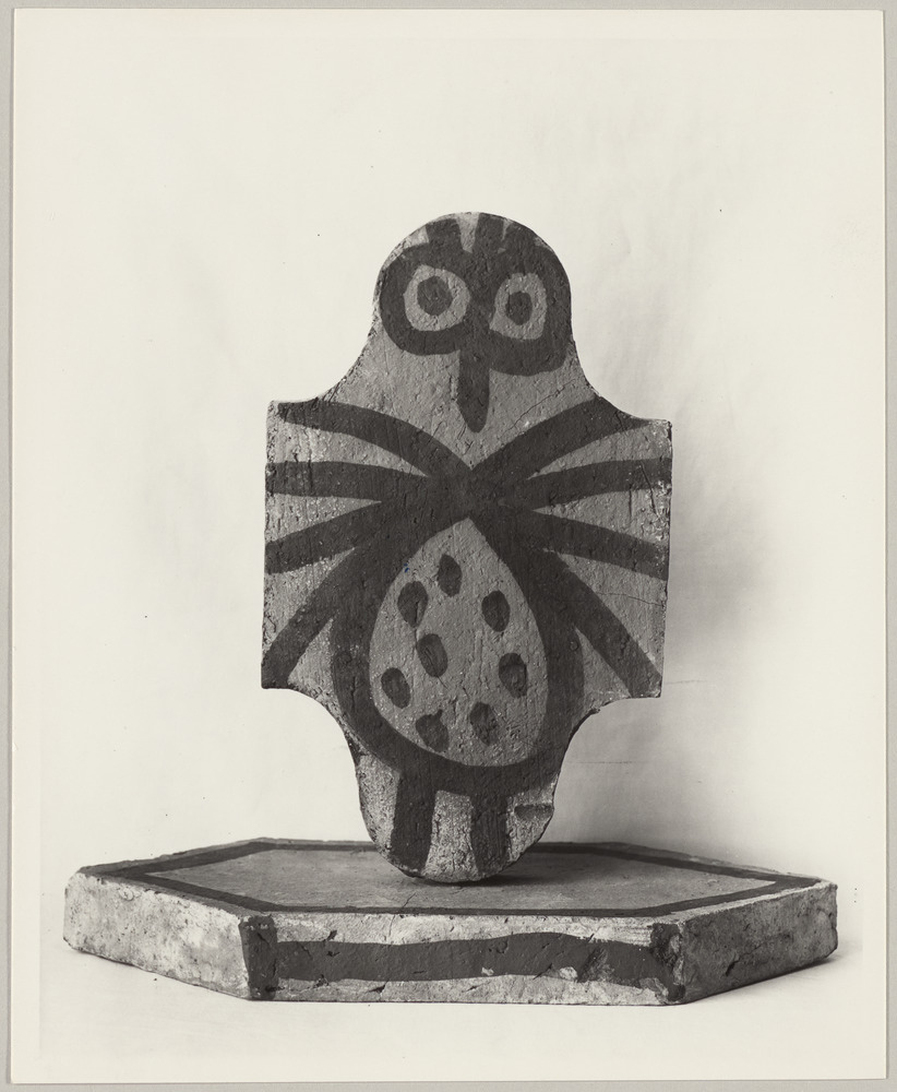 Copié dans le presse-papier :Tomette fixée sur un socle en céramique "Hibou noir (corps rond)", Madoura, 1956 - s.d. - https://cep.museepicassoparis.fr/explorer/tomette-fixee-sur-un-socle-en-ceramique-hibou-noir-corps-rond-madoura-1956-apph11497