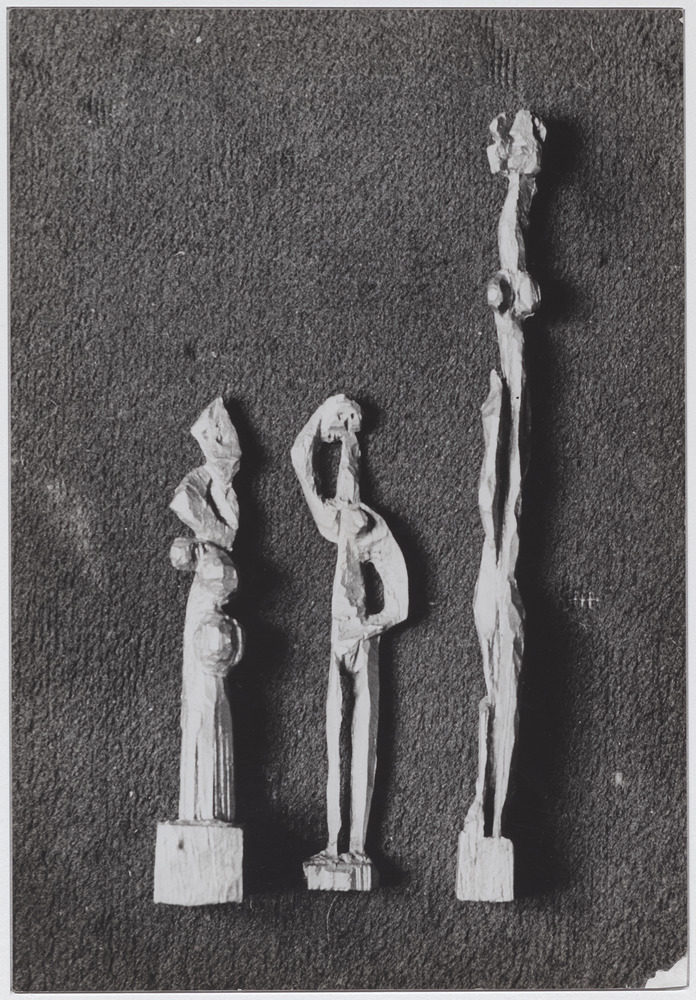 Trois sculptures en bois "Femme debout" de 1930, dans l'atelier de la rue La Boétie, Paris, en décembre 1932