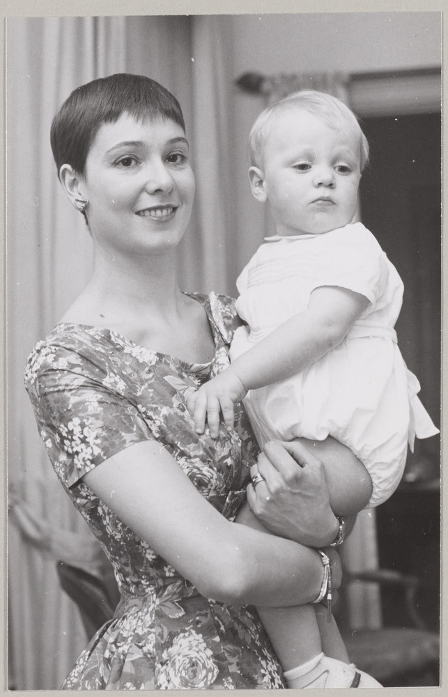 Ulla Ahrenberg et son fils Staffan lors du baptème d'Annette Ahrenberg, Stockholm, le 12 avril 1959