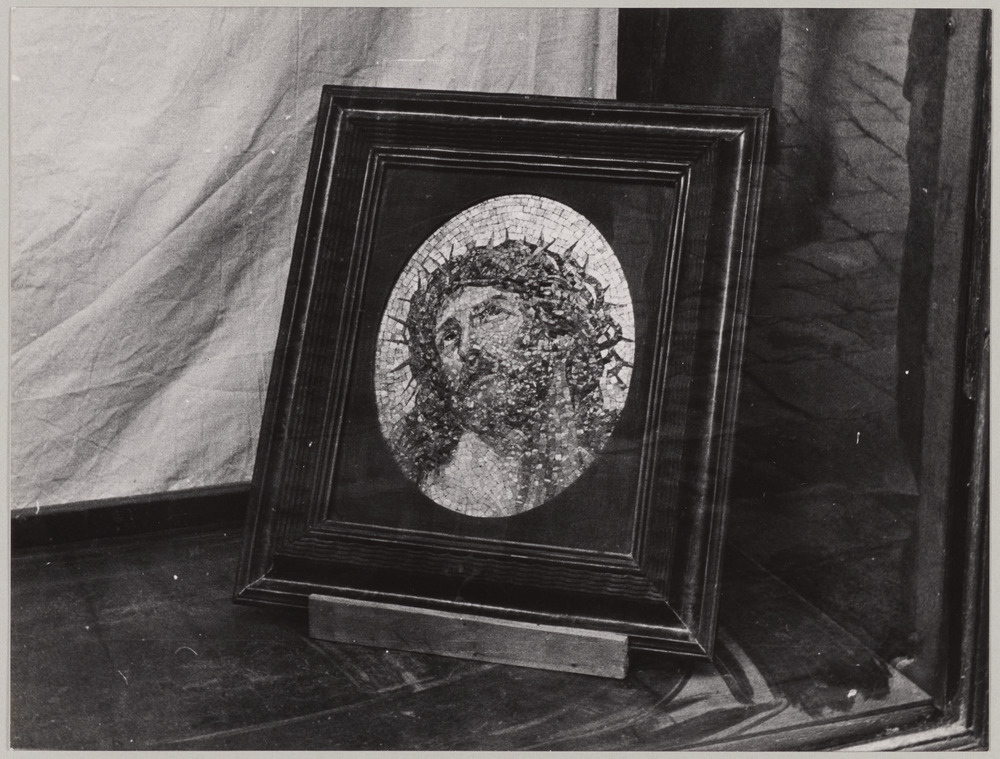 Une mosaïque sur un lutrin, représentant un Christ en médaillon, [Venise, Italie], [vers 1967]