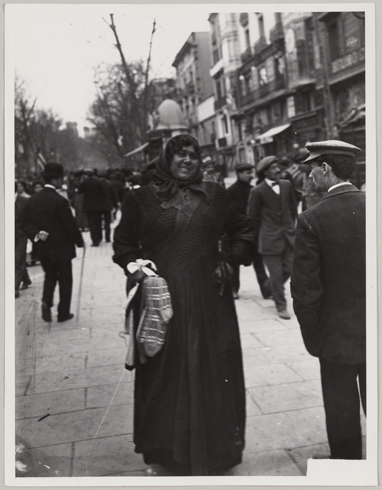 Vendeuse ambulante sur La Rambla de les Flors (Sant Josep), Barcelone, en 1907-08
