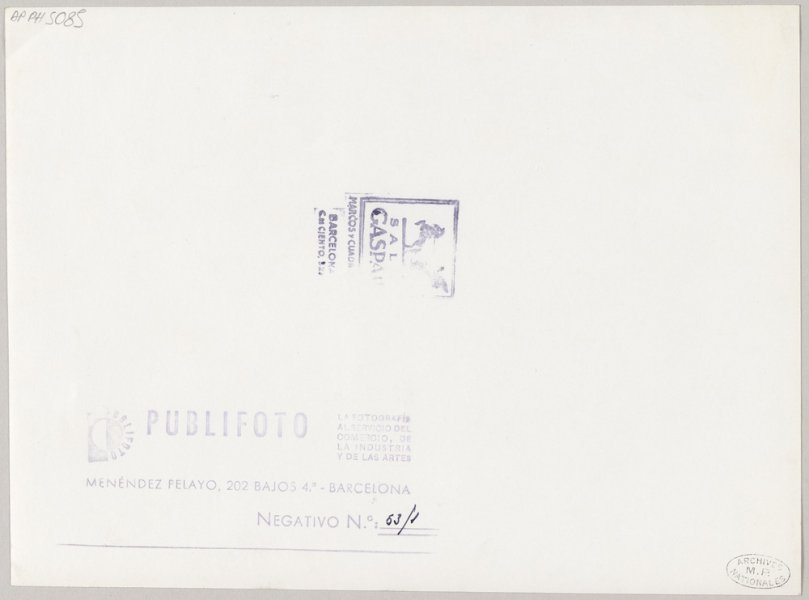 Cachet au dos, en bas, à gauche : "PUBLIFOTO", Barcelona