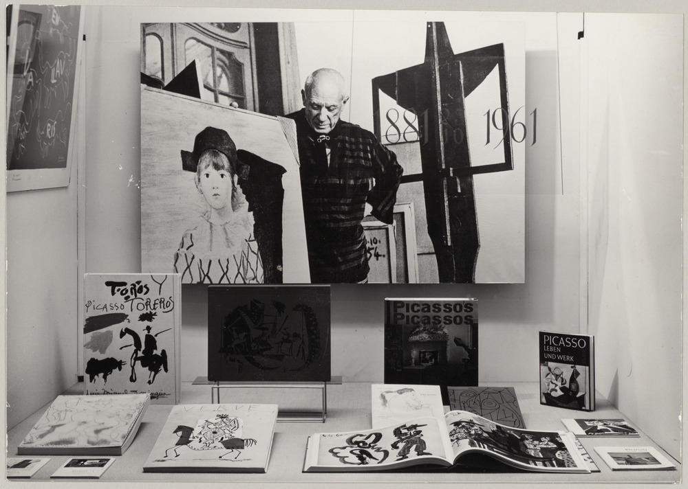 Vitrine de la librairie Sandbergs dédiée à Picasso en l'honneur de l'anniversaire de ses 80 ans, Stockholm, 25 octobre 1961
