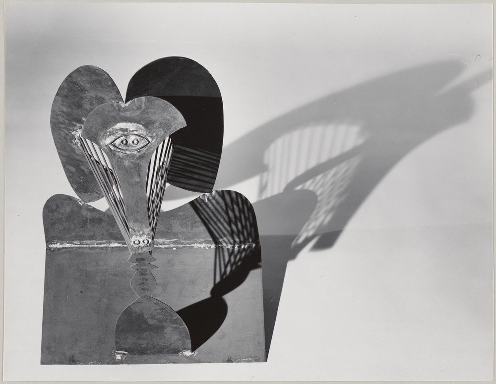 Vue de face de la "Tête" de la maquette de la sculpture du Chicago Civic Center, en acier soudé, Mougins, 1962-1964