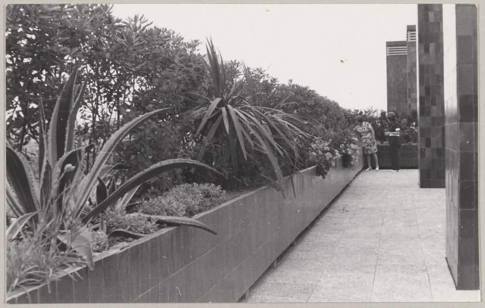 Vue de la terrasse avec les deux femmes debout [vers 1970]