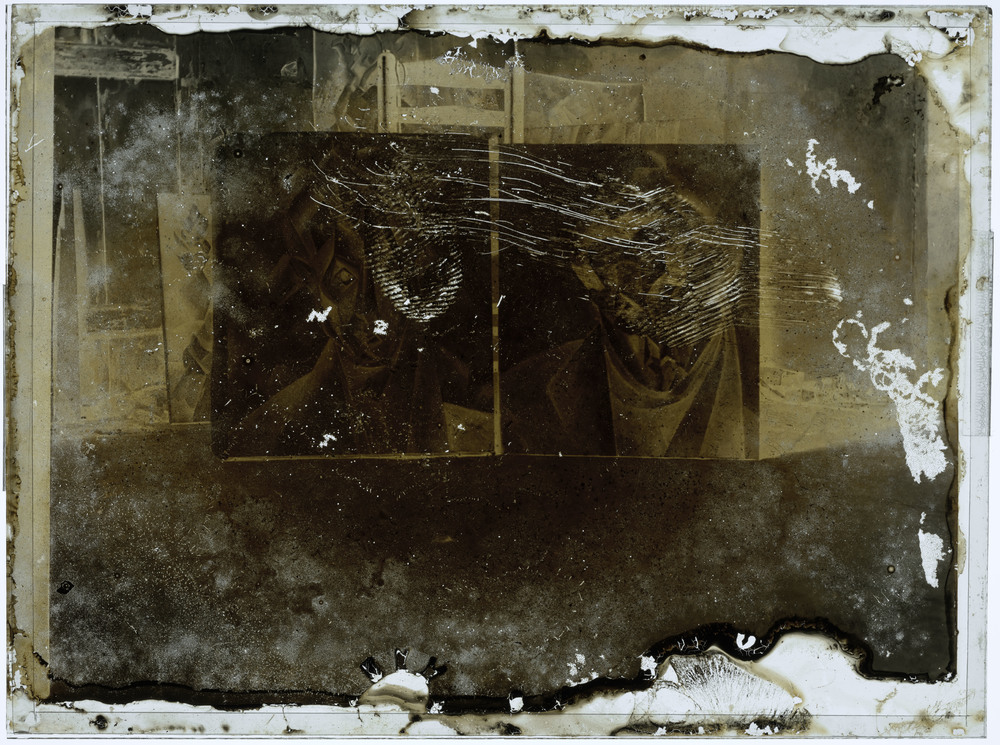 Les autres toiles présentes sur la photographie sont (en retrait derrière les "Tête de femme") : "Femme au bouquet", "Bouteille d'Anis Del Mono", "Carafon, pot et compotier"