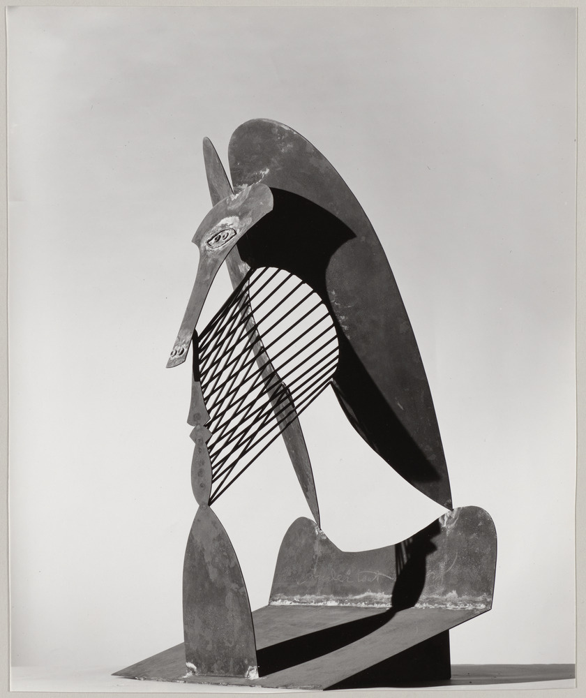 Vue de trois-quarts gauche la "Tête" de la maquette de la sculpture du Chicago Civic Center, en acier soudé, Mougins, en 1962-1964
