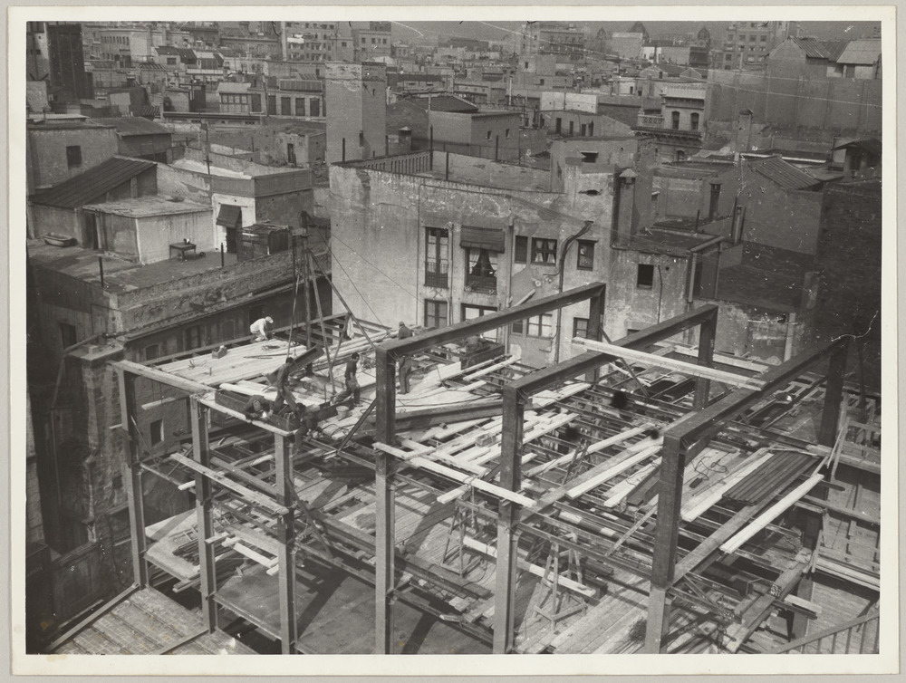 Vue du chantier du Collège des architectes de Catalogne, Barcelone, en 1960-62