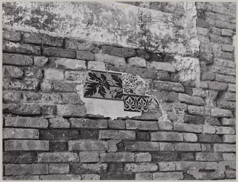 Vue d'un mur avec des restes de mosaïque ancienne, [Venise, Italie], [vers 1967]