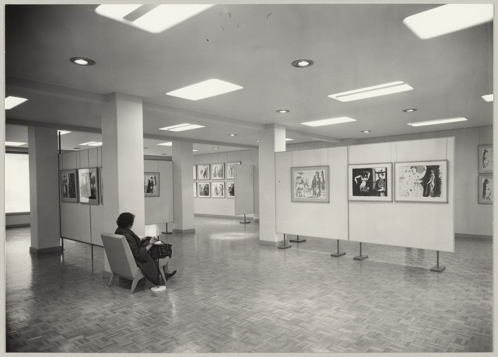 Vue d'une salle avec des dessins 1959-1960 lors de l'exposition Picasso à la galerie Louise Leiris du 30 novembre 1960 au 31 décembre 1960