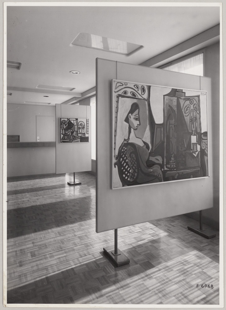 Vue d'une salle de l'exposition Picasso à la galerie Louise Leiris, Paris, en mars-avril 1957