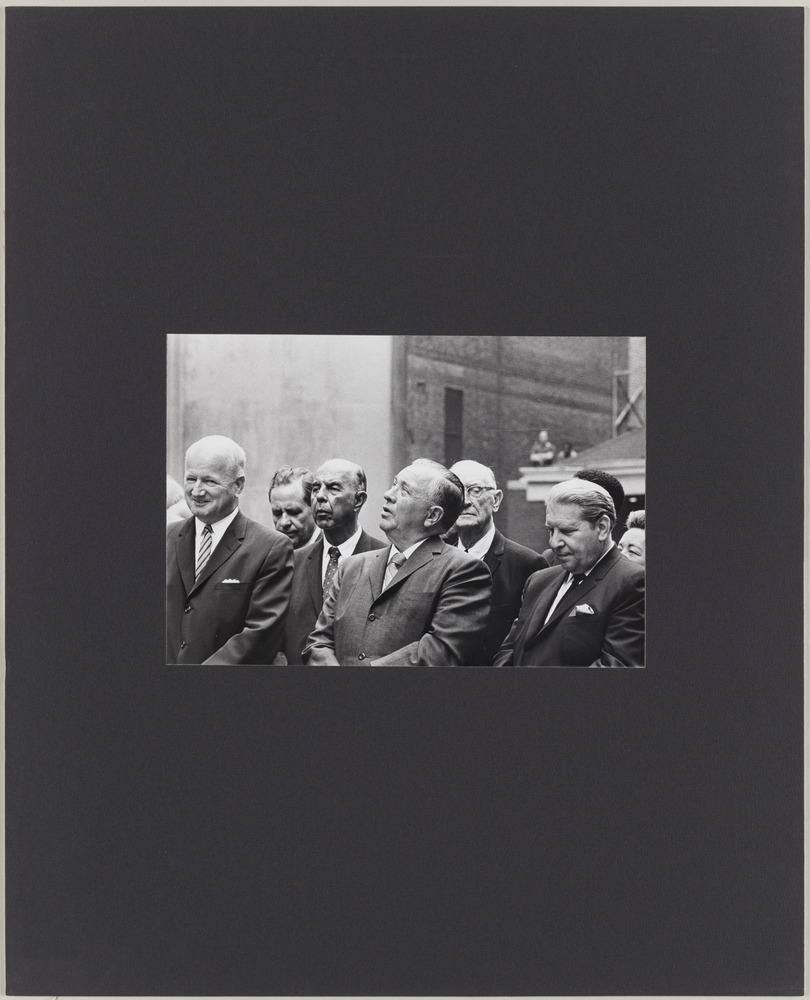 William Hartmann avec Richard J. Daley lors de l'inauguration de la sculpture monumentale "Tête" du Chicago Civic Center (Daley Center), Chicago, le 15 août 1967