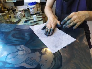Recherche des encres pour l’impression de Maternité, atelier de Chalcographie, mai 2023